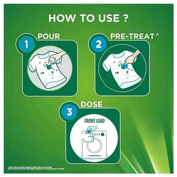 New Ariel Matic Front Load Liquid Detergent gives tough stain removal in just 1 wash, as well as prevent your colored clothes from fading. As a liquid detergent, it dissolves easily in water. With Ariel's superior technology, it is hard on stains but soft on colors - giving your colored clothes the perfect wash solution. Especially formulated for fully automatic washing machines, 1 litre of Ariel matic liquid detergent washes as much as 1kg powder, hence delivering excellent usage value. Ariel’s cutting- edge technology provides brilliant stain removal for all your clothes, by tackling even tough stains like tea, coffee, chocolate, tomato, etc. The unique cap ensures 0 percent spillage, to give you a non-messy, truly delightful experience. Ariel matic liquid washing detergent also has a refreshing, fragrance that freshens up your loads. Step out into the world with confidence knowing that you have Ariel as your partner in laundry