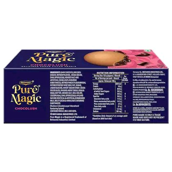 Britannia Pure Magic Chocolush Choco Filled Cookie is a pack full of indulgent surprise. The yummy melted liquid chocolate is filled inside the long and crispy biscuit. Giving you a journey of enchanting taste filled with a delighting surprise. So go ahead order Britannia Pure Magic Chocolush Choco Filled Cookie online now!