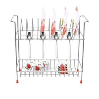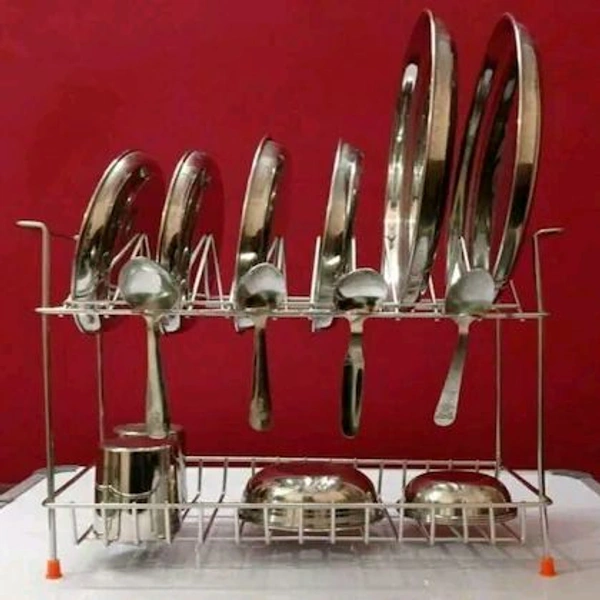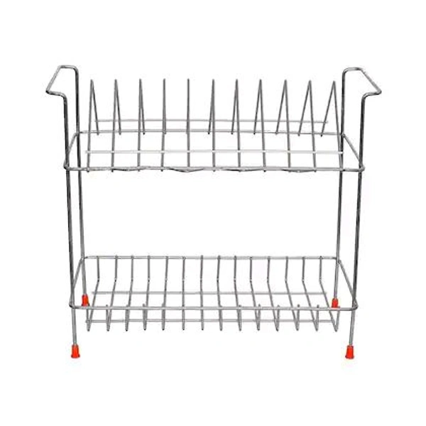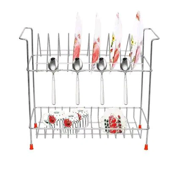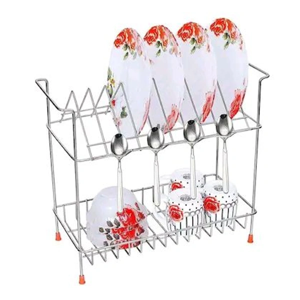 Kitchen Utensils Rack Kitchens are all about storage. However, rows of built-in cupboards and wall cabinets, may not always be practical to store often used utensils, especially right after washing. Home Creations presents a compact, efficient storage method for your kitchen utensils like plates, spoons, bowls and glasses. Racks can add a lot of space to your kitchen and help with organization, which is key to smooth running of the kitchen. It is also a breeze to assemble. 2 layers design The two layers on the rack helps to store things according to preferences. Plates can be stored on the top rack and you can keep glasses and bowls or other utensils in the bottom one racks. You also have the option to hang spoons from the hooks on the side of the stand. You can store up to 6 plates on this stand. Stainless Steel. The rack is made of stainless steel that resists corrosion, so you can store your wet utensils on it without worry.