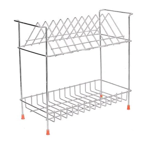 Geschir Steels Stainless Steel 2 Shelf Wall Mount Kitchen Racks | Dish Rack with Cutlery and Plate Kitchen Stand | Modular Kitchen Bartan Stand | Multipurpose Stand