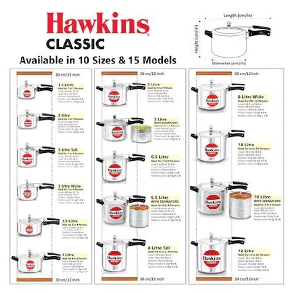 Hawkins 3 Litre Classic Pressure Cooker, Wide Design Pan Cooker, Best Inner Lid Cooker, Silver (CL3W)