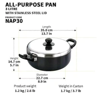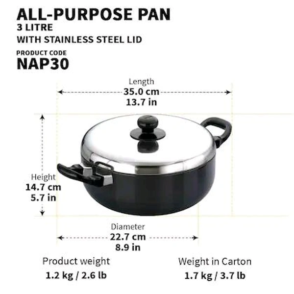 Hawkins Futura 3 Litre All Purpose Pan, Best Non Stick Pan with Stainless Steel Lid, Kitchen Pan, Black (NAP30)