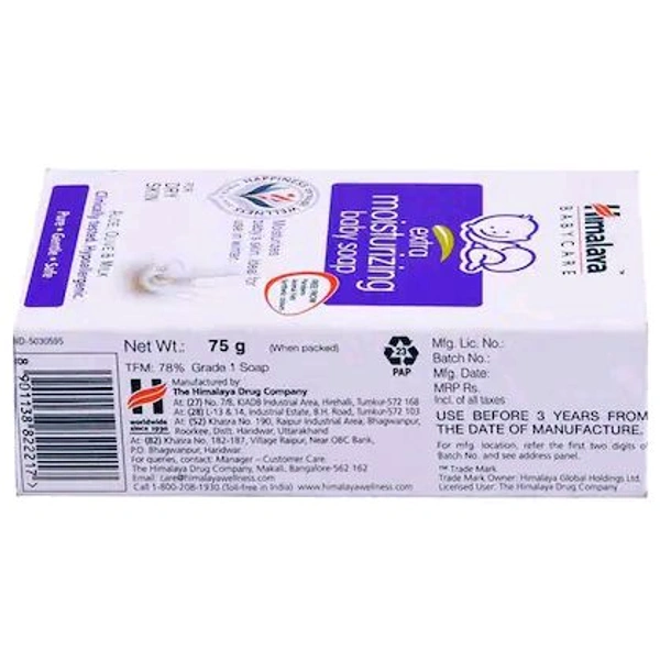 Pamper your baby's delicate and soft skin with Himalaya Extra Moisturizing Baby Soap. It moisturizes your baby's gentle skin and keeps it soft. Make bath-time of your baby the best part of your day. So go ahead and buy this product online today!