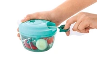 Chop All Types of Vegetables and Fruits with Ease: The SEVRIZ New Handy Chopper is an excellent solution to all of your fruit and vegetable chopping needs. Featuring three sharp and durable stainless steel blades and a unique string design, this manual chopper chops and cuts vegetables in a hassle-free manner with minimal effort. Simply cut the fruits or vegetables to a medium size before placing them in the chopper and get an evenly chopped version for your salads, fruits, sabzi preparations and other cooking purposes. Made from High Quality Materials for Long-Lasting Use: This chopper is made using sturdy and unbreakable ABS plastic which makes it highly durable for everyday use. The three chopping blades are made from robust stainless steel and are extremely sharp for chopping through most vegetables and fruits with ease. These blades retain their sharpness even with regular use, enabling superior performance for a long time. Easy to Use, Clean and Maintain: Featuring an easy-to-use operation, the SEVRIZ New Handy Chopper consists of a short string that needs to be pulled to rotate the blades, which in turn initiates the chopping operation. Furthermore, the simple design makes it easy to disassemble the blades for easy cleaning and maintenance