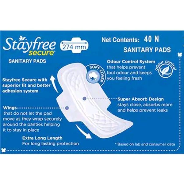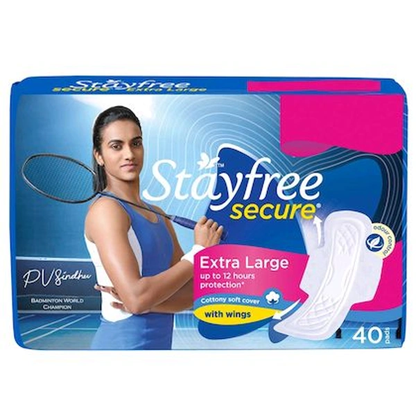 Stayfree Secure Cottony Soft Cover Sanitary Napkin with Wings (XL) 40 pads