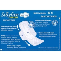 Now it's time to get all-day-long freshness round the clock during your periods. Stayfree Secure Cottony Soft Cover Sanitary Napkin with Wing pads ensures you continue your day with ease and comfort. It is soft on your skin and gives you complete protection from leakage with long-lasting odour protection. So what are you waiting for? Buy the product at the best rate, right here!